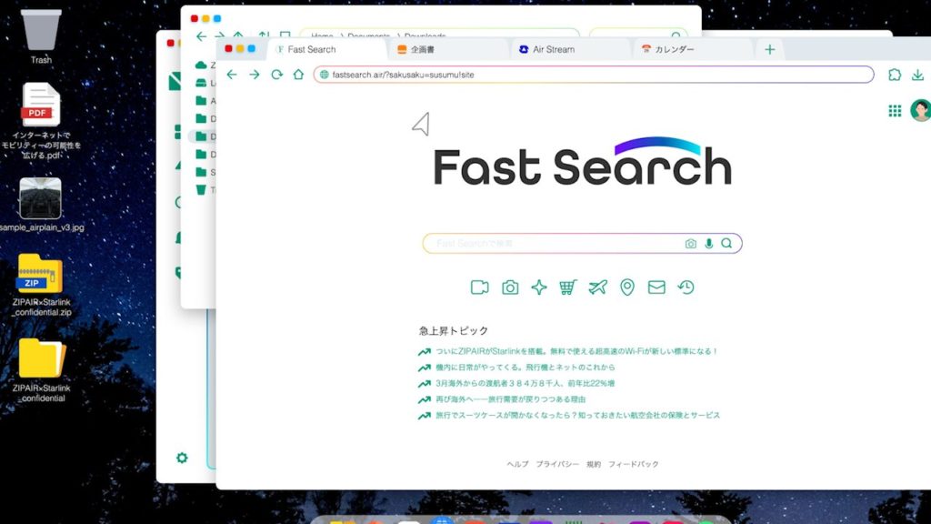 国際線航空会社「ZIPAIR」で、高速回線の衛星インターネット「Starlink」が無料で利用できるサービスを伝える広告映像を制作しました。