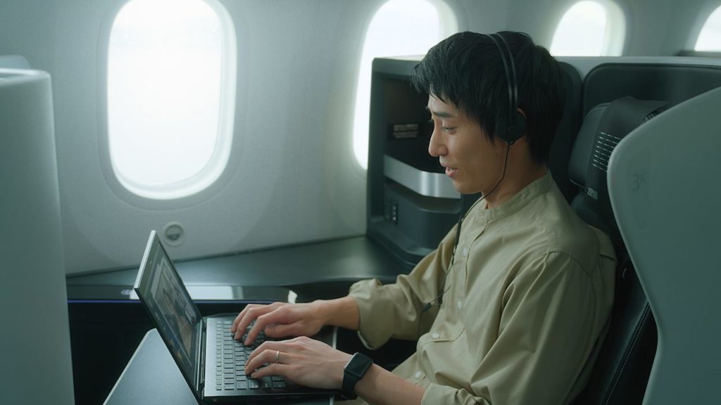 The film depicts a new travel experience enabled by an internet environment that matches the speed and stability of ground connectivity. Through scenes such as remote work, online communication, and real-time sports streaming, it illustrates how time spent in-flight can be transformed.